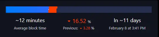 Ako se hashrate ne oporavi u kratkom roku, sledeće prilagođavanje moglo bi rezultirati smanjenjem težine za oko 16%.