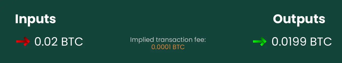 U Bitcoin mreži je princip isti: razlika između svih inputs i outputs, odnosno iznos koji nije eksplicitno potrošen, predstavlja transakcijsku naknadu koju miner može da preuzme.