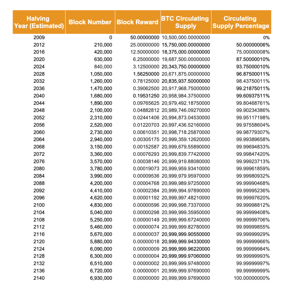 - Ova granica proizilazi iz kombinacije 10-minutnog vremena za blok, četvorogodišnjih halving ciklusa i početne nagrade od 50 BTC.